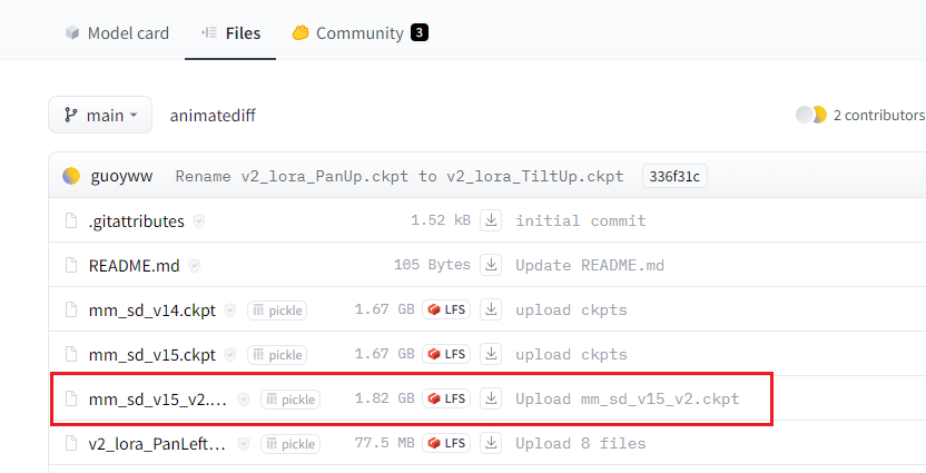 上記サイトの以下の個所から「mm_sd_v15_v2.ckpt」をダウンロードする