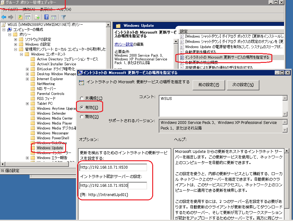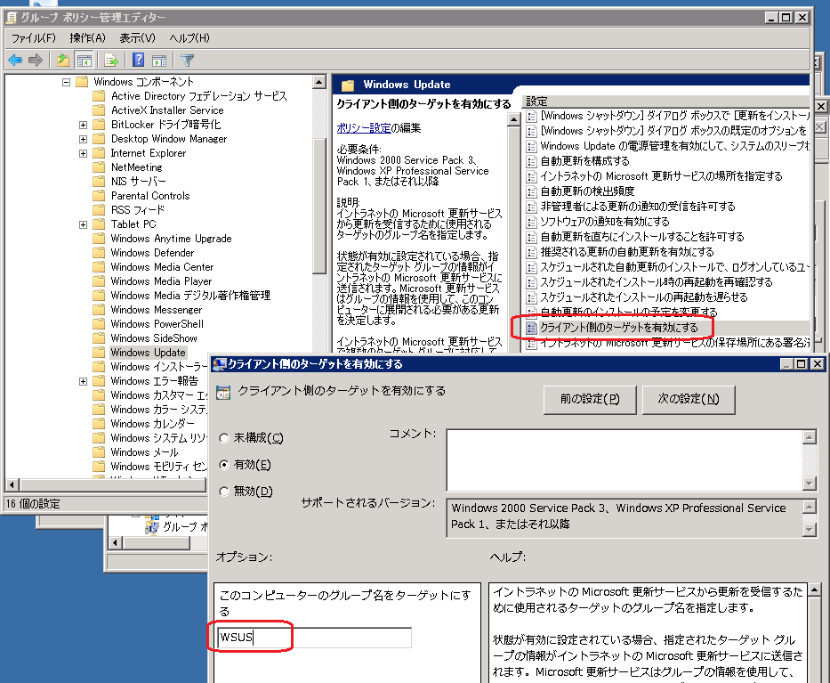 ここではクライアントPCをADのグループポリシーで決めることにする。(ADがない場合はクライアントローカルグループポリシーエディタを直接変更する 図 Client1.png, Client2.png)