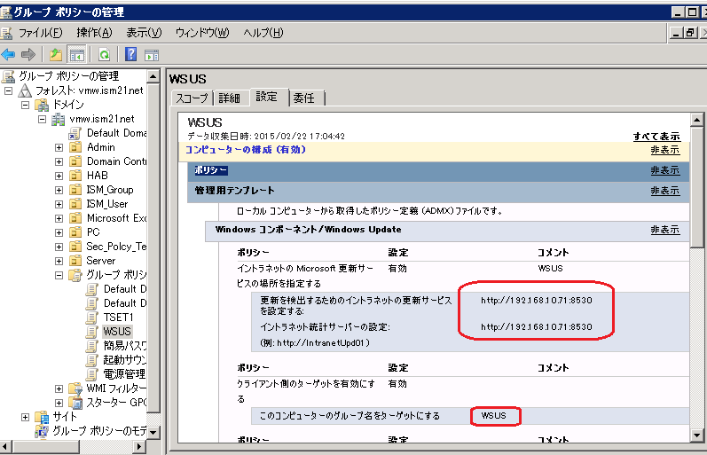 また、以下のクライアント側で以下のコマンドを実行で、しばらくすると、WSUSにクライアントが登録される