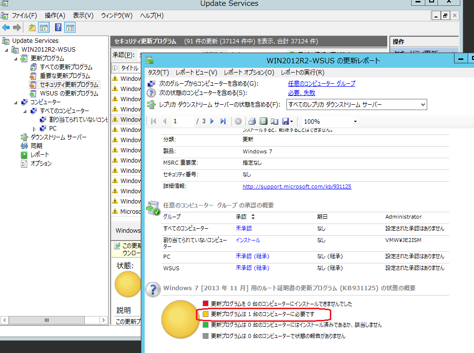 WSUSサーバでUpdateするサービス内容(Windows7はUpdateする、Office2003はしない)、Updateのタイミングいつなどを決める