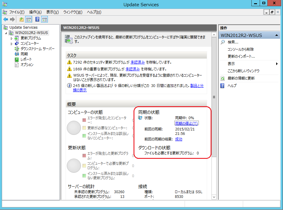 MSからUpdate情報をWSUSサーバにDLして情報を同期させる