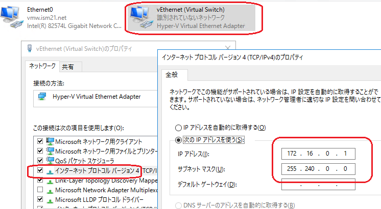PS C:\> $Container = Get-Container -Name "IsmContainer" PS C:\> Enter-PSSession -ContainerId $Container.ContainerId -RunAsAdministrator [IsmContainer]: PS C:\Windows\system32> ^^^^^^^^^^^^^^^^^^^^^^^^^^^^^^^^^^^^^^^^コンテナ内のshell [IsmContainer]: PS C:\Windows\system32> ping 192.168.10.245 Pinging 192.168.10.245 with 32 bytes of data: Reply from 192.168.10.245: bytes=32 time<1ms TTL=63 Reply from 192.168.10.245: bytes=32 time<1ms TTL=63 [IsmContainer]: PS C:\Windows\system32> tracert 192.168.10.245 Tracing route to bhr-4grv.ism21.net [192.168.10.245] over a maximum of 30 hops: 1 * * * Request timed out. 2 <1 ms <1 ms <1 ms bhr-4grv.ism21.net [192.168.10.245] [IsmContainer]: PS C:\Windows\system32> ping www.google.co.jp Pinging www.google.co.jp [216.58.221.163] with 32 bytes of data: Reply from 216.58.221.163: bytes=32 time=19ms TTL=55 Reply from 216.58.221.163: bytes=32 time=18ms TTL=55