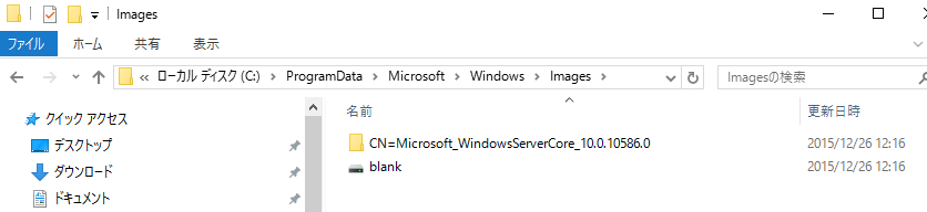 コンテナOSイメージが「C:\ProgramData\Microsoft\Windows\Images」 に入る。
