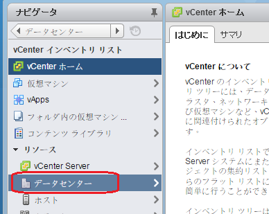 データストアにはホストに登録されたストレージが見える。iSCSI以外は使用しないので削除してもよい(今回は削除しなかった)