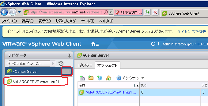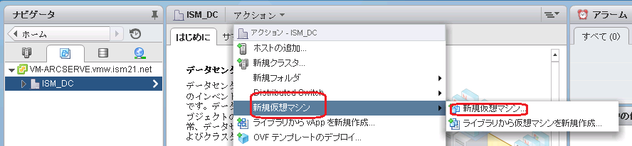 vCenter Sever[VM-ARCSERVE.vmw.ism21.net] | |---データセンター[ISM_DC]