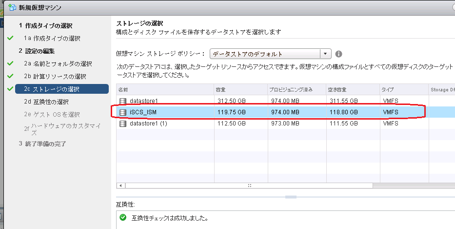 ただし事前にESXiでiSCSIをストレージとして認識させておく