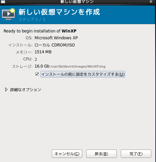 # virsh start WinXP ドメイン WinXP が起動されました