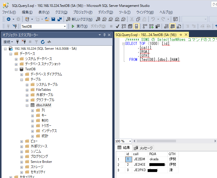 1> USE TestDB 2> go データベース コンテキストが 'TestDB' に変更されました。