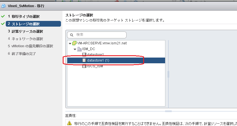 移行タイプで「最初に計算リソースを選択します」にしたら以下のようなエラーが出て移行できなかかった リソース不足(たかに実験環境でリソースはない)