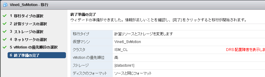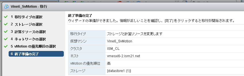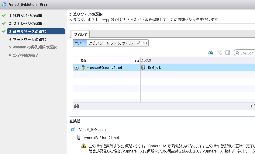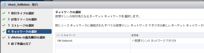 vCenter Web Clientを使用して移動させた。移動途中第3のマシンからpingを行い。sshでログインしていたが、セッションが切れることはなかった