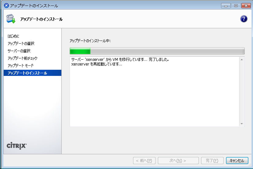 各サーバの「全般」タブから一番下のアップデートで「適用済み」にて確認