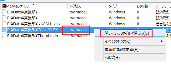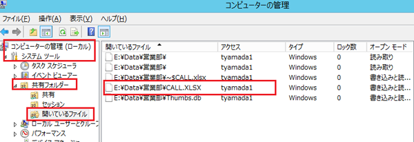 ファイルサーバ上のファイルを開くとき以下のようなメッセージが出たとき、使用者を確認する方法