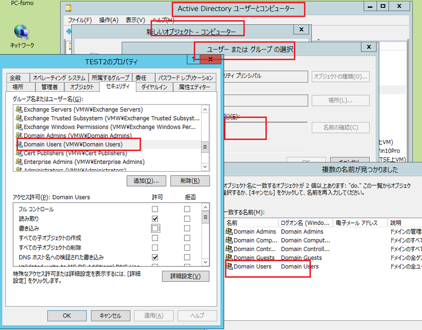そのとき、コンピュータのプロパティには「Domain Users」が追加する。