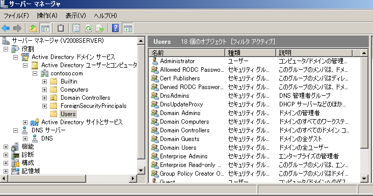 ドメイン名:contoso.com