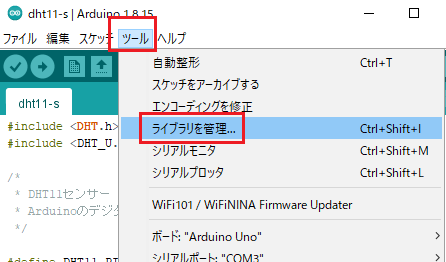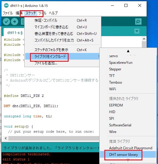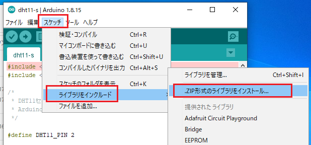 adafruitのオープンソースのDHT-sensor-library(ダウンロード)をダウンロードする。