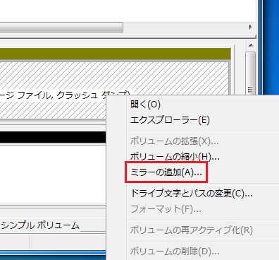 Windows7ではOSにRaid1(ミラー)の機能があるようだ。これを試してみる