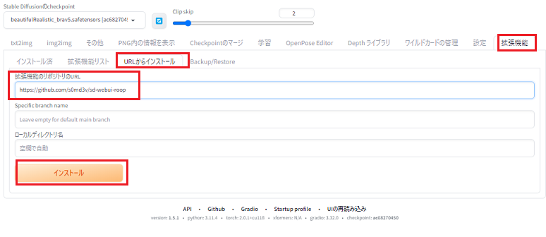 stable-diffusion-webui\models\roop¤Ënswapper_128.onnx¥â¥Ç¥ë¤òÆþ¤ì¤ë