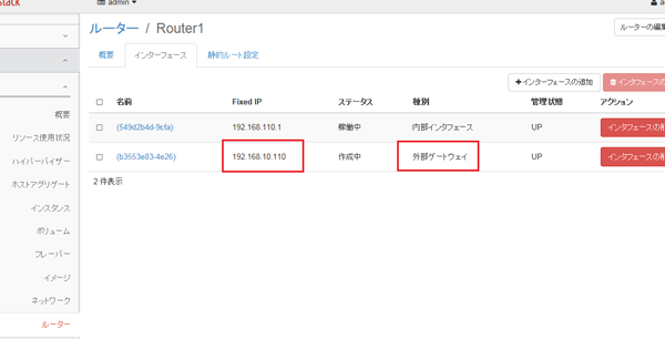 IPが192.168.10.110でルータにインターフェイスをpublic側に作成