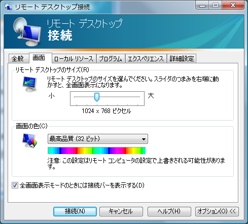 このとき、本来のリモートディスクトップのポートは3389であるが同じのローカルホストでもうまく動かないので3390に指定