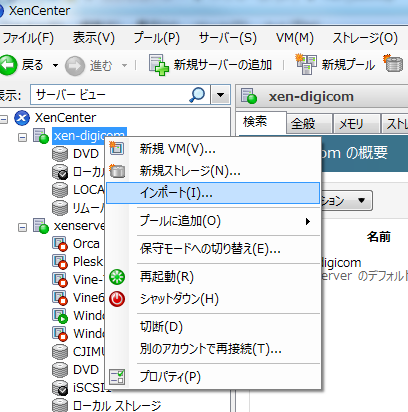 XenServer-5.6.100-SP2-XenCenter(英語版)でも日本語版でも大差はないようだ。