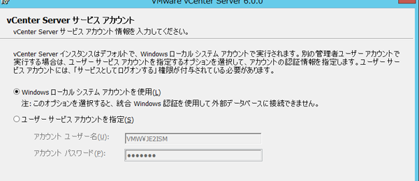 vCenter インストール †Linuxベースのアプライアンスをインストールしたがなぜか、vCenter Severが動作しなかったので、Windows2008R2に Windows版をインストール Windows200R2の場合は8GBのメモリが必要 CDのルートから「autorun]をダブルクリックでインストール。 途中、SSOのドメイン vsphere.local(デフォルト)を入れる画面がある インストール完了後Windowsの場合は以下のようなIDになる